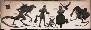 AM: Many of your pieces are of anthropomorphic creatures, such as your character sketches for Aiden and Darcia. How do you approach a balance of the animal/creature side with the human look and feel? Are there many iterations before you settle on how a character looks?